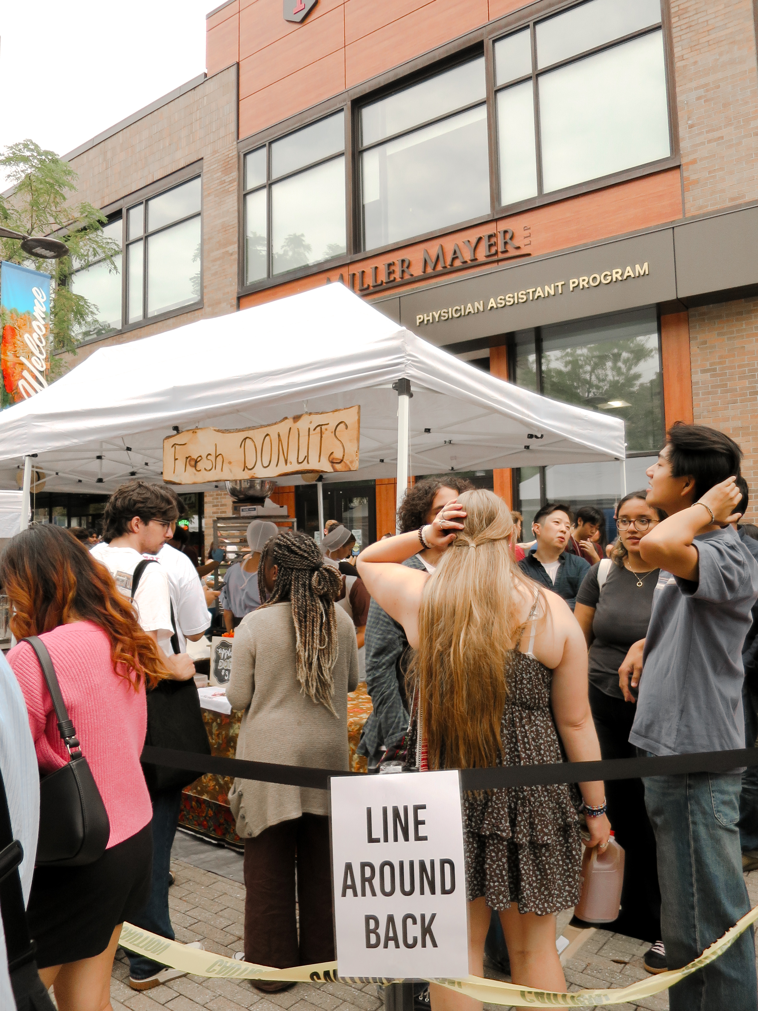 As I sat across from Levi’s doughnuts, a line had begun to form. Two college girls posed in front of the stand for a picture, doughnuts proudly displayed in hand as the hum of conversation and laughter grew louder. I noticed a straw hat resting in the tent’s rafters—a quiet witness to the bustle of people below. Despite its stillness, somehow it still coalesced into the surrounding change.