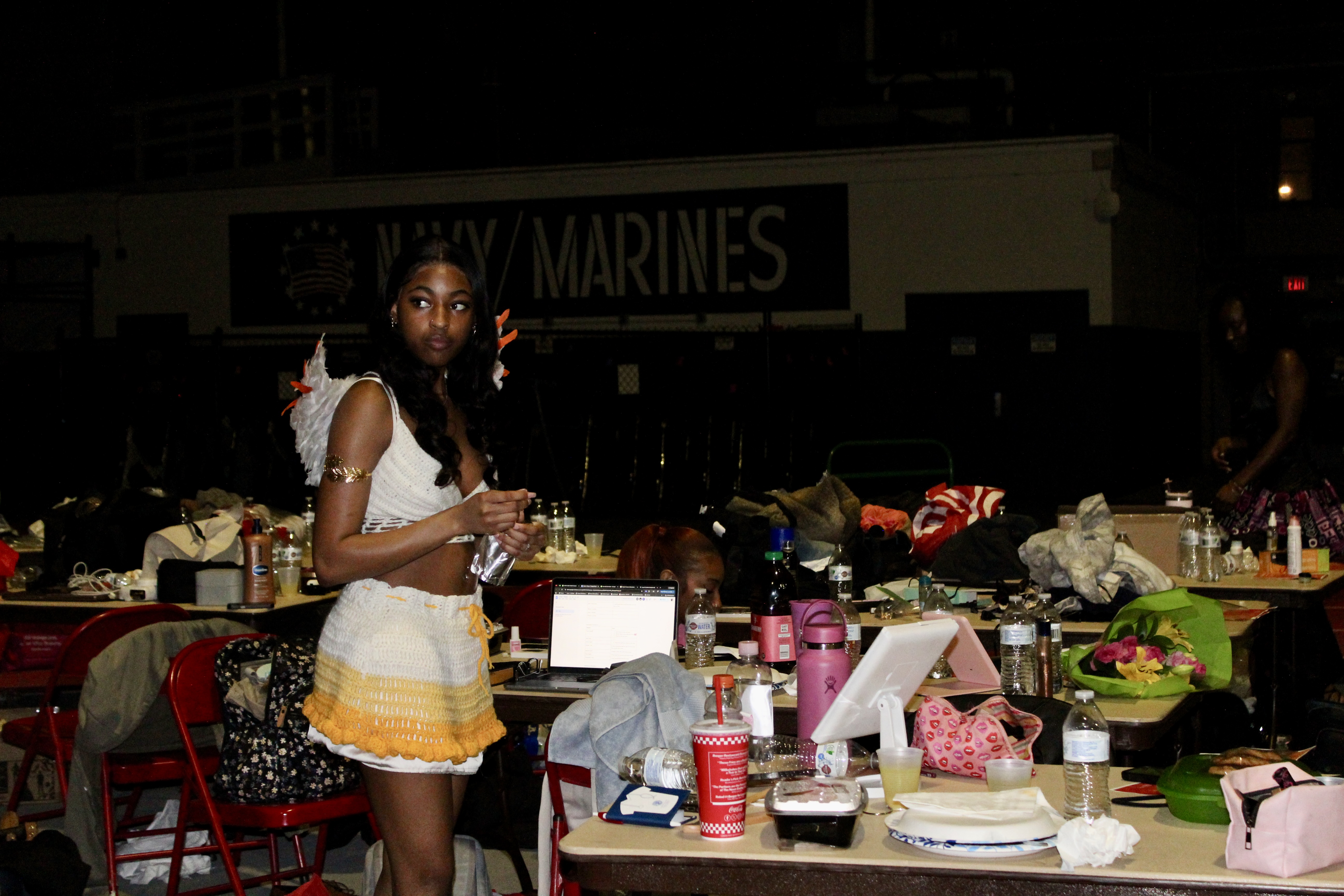 PASA’s President, Selsa Mertami, who was adorned in a bright, body-hugging orange gown, called everyone working AFRIK up for a pre-show speech. Models needed to ensure they held their poses and did not rush through their walks. Women’s fitting room on the right, men’s on the left. Make sure you know what side of the runway you’re on so people aren’t yelling after you.