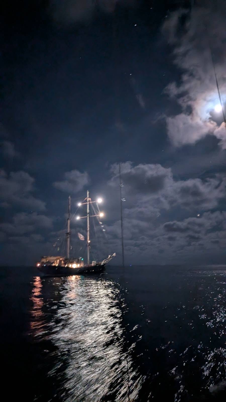 Although they weren’t expected to assist the crew—the captain, first mate, and mechanic—the veterans, accustomed to the teamwork of a military environment, joined in to support the ship’s routines. For Najeh, who had never been on a sailboat before, the work was entirely new, but he learned each task as it came. They unfurled the ship’s sails, hauled seawater up, learned knots for securing items, and tidied up regular messes.